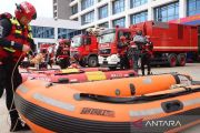 Petugas pemadam kebakaran memeriksa perahu penyelamat di Distrik Haicang, Xiamen, Provinsi Fujian, China tenggara, Rabu (26/72023). Kantor Pusat Pengendalian Banjir dan Bantuan Kekeringan Negara China pada Rabu (26/7) menaikkan level tanggap darurat untuk topan dan banjir ke Level III saat Topan Doksuri diperkirakan akan mendarat di China selatan pada Jumat (28/7) dan mengerahkan empat tim ke Provinsi Zhejiang, Fujian, Guangdong, dan Jiangxi untuk membantu upaya-upaya pencegahan banjir dan topan setempat. ANTARA FOTO/Xinhua/Zeng Demeng/rwa.