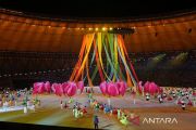 Sejumlah penari tampil pada upacara pembukaan Chengdu 2021 FISU World University Games Summer di Dongan Lake Sports Park Stadium, Chengdu, China (28/7/2023). Indonesia mengirimkan 51 atlet mahasiswa yang akan berlaga di ajang olahraga internasional tersebut. ANTARA FOTO/Kenichiro Ogane/AFLO via Reuters/tom.