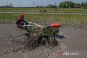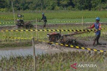 Dua peserta balap traktor beradu kecepatan di Karangduren, Kebonarum, Klaten, Jawa Tengah, Sabtu (29/7/2023). Balap traktor yang diikuti 32 orang dewasa dan 16 orang anak tersebut bertujuan untuk meningkatkan potensi jasa traktor sawah sebagai daya tarik wisata melalui sebuah kejuaraan dan regenerasi di bidang petani. ANTARA FOTO/Aloysius Jarot Nugroho/tom.