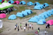 Peserta bermain bola di lokasi perkemahan Jambore Pramuka Dunia ke-25 (25th World Scout Jamboree) di Buan, Korea Selatan, Kamis (4/8/2023). Jambore yang akan berlangsung hingga 12 Agustus 2023 itu dihadiri sekitar 43.000 pramuka dari 150 negara dan Indonesia mengirimkan kontingen pramukanya yang beranggotakan lebih dari 1.700 orang. ANTARA FOTO/REUTERS/Kim Hong-Ji/tom.