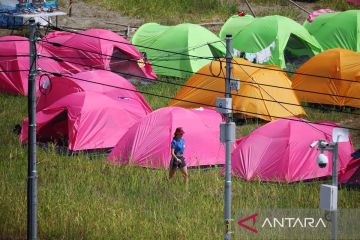 Seorang peserta berjalan di lokasi perkemahan Jambore Pramuka Dunia ke-25 (25th World Scout Jamboree) di Buan, Korea Selatan, Kamis (4/8/2023). Jambore yang akan berlangsung hingga 12 Agustus 2023 itu dihadiri sekitar 43.000 pramuka dari 150 negara dan Indonesia mengirimkan kontingen pramukanya yang beranggotakan lebih dari 1.700 orang. ANTARA FOTO/REUTERS/Kim Hong-Ji/tom.