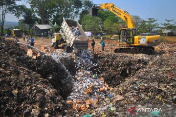 Petugas menggunakan alat berat untuk memusnahkan rokok ilegal di Tempat Pembuangan Akhir (TPA) Tanjungrejo, Kudus, Jawa Tengah, Jumat (4/8/2023). Bea cukai bersama pemerintah setempat memusnahkan sebanyak 6,16 juta batang rokok ilegal berbagai merek hasil penindakan periode Mei 2022 sampai Mei 2023, dengan perkiraan nilai barang Rp7 miliar dan potensi kerugian negara Rp4,7 miliar. ANTARA FOTO/Yusuf Nugroho/aww.