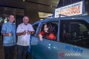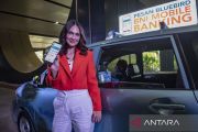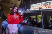 Brand ambassador BNI Luna Maya menunjukkan fitur aplikasi transformasi digital BNI dan Bluebird pada mobile banking saat menghadiri peluncuran aplikasi tersebut di Jakarta, Jumat (4/8/2023). PT Bank Negara Indonesia (Persero) Tbk. berkolaborasi bersama PT Blue Bird Tbk. menghadirkan aplikasi kemudahan digital dalam program penguatan cashless society meliputi fitur layanan mobilitas di BNI Mobile Banking pada fitur lifestyle untuk memperluas jangkauan kepada pelanggan. ANTARA FOTO/Muhammad Adimaja/aww.