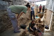 Anggota Aranzadi Science Society ikut ambil bagian dalam penggalian jenazah orang-orang yang dibunuh oleh pasukan diktator Francisco Franco tahun 1939 di pemakaman Colmenar Viejo, Spanyol, Jumat (11/8/2023). Penggalian terhadap lebih dari 100 jenazah korban perang saudara Spanyol tersebut untuk diidentifikasi dan diserahkan ke pihak keluarganya. ANTARA FOTO/Reuters/Juan Medina/nym.