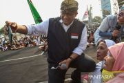 Bakal Calon Presiden Anies Baswedan menyapa relawan saat menghadiri deklarasi relawan Kuning Ijo Biru (KIB) di Lapangan PRPP Semarang, Jawa Tengah, Minggu (20/8/2023). Deklarasi yang dihadiri jajaran kader partai politik dari Koalisi Perubahan serta ratusan relawan KIB se-Jateng tersebut guna mendukung pemenang Anies sebagai Presiden Indonesia periode 2024-2029. ANTARA FOTO/Makna Zaezar/Spt.