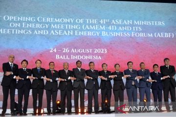 Menteri Energi dan Sumber Daya Mineral (ESDM) Arifin Tasrif (tengah) bersama sejumlah menteri energi dan perwakilan negara ASEAN berfoto saat pembukaan 41st ASEAN Ministers on Energy Meeting (AMEM-41) dan ASEAN Business Energy Forum (AEBF) di Badung, Bali, Kamis (24/8/2023). Pertemuan AMEM-41 dan AEBF 2023 itu diharapkan dapat berkontribusi terhadap investasi dan kerja sama pada tiga pilar di sektor energi negara-negara ASEAN yakni keberlanjutan, keamanan, dan interkonektivitas. ANTARA FOTO/Fikri Yusuf/tom.