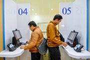 Warga membayar pajak kendaraan melalui Samsat Digital di Terminal Leuwipanjang, Bandung, Jawa Barat, Selasa (29/8/2023). Pemerintah Provinsi Jawa Barat bersama Jasa Raharja dan Korlantas Polri meresmikan Samsat Digital yang ditujukan guna memudahkan pembayaran pajak kendaraan bermotor dari semula dua jam menjadi dua puluh menit. ANTARA FOTO/Raisan Al Farisi/hp.