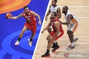 Pebasket Timnas basket Lebanon Amir Saoud (kiri) bersama rekannya Ali Mezher (kanan) berselebrasi usai mencetak tiga poin saat melawan Timnas basket Pantai Gading dalam pertandingan fase babak klasifikasi penentuan peringkat FIBA World Cup 2023 di Indonesia Arena, Gelora Bung Karno, Senayan, Jakarta, Kamis (31/8/2023). Timnas basket Lebanon berhasil mengalahkan Timnas basket Pantai Gading dengan skor 94-84. ANTARA FOTO/M Risyal Hidayat/nym.