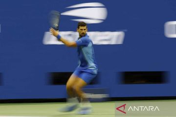 Aksi petenis Serbia Novak Djokovic saat menghadapi kompatriot Laslo Djere pada babak ketiga US Open di Flushing Meadows, New York, Amerika Serikat, Jumat (1/9/2023). Djokovic lolos ke babak 16 besar dan akan menghadapi petenis Kroasia Borna Gojo. ANTARA FOTO/USA TODAY Sports via Reuters Con/Geoff Burke/rwa.