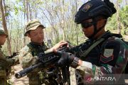 Prajurit korps Marinir TNI AL mengecek senapan mesin Howa type 20 milik Angkatan Darat Bela Diri Jepang (JGSDF) pada Latihan Gabungan Bersama (Latgabma) Super Garuda Shield (SGS) di Hutan Selogiri Kalipuro, Banyuwangi, Jawa Timur, Minggu (3/9/2023). Latihan tersebut untuk berbagi teknik dan taktik dalam melaksanakan patroli tempur. ANTARA FOTO/Budi Candra Setya/Spt.