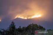 Api membakar hutan dan lahan kawasan Gunung Arjuno terlihat di Prigen, Pasuruan, Jawa Timur, Selasa (5/9/2023). Menurut data Badan Penanggulangan Bencana Daerah (BPBD) Jawa Timur kebakaran hutan dan lahan di kawasan Gunung Arjuno meluas di 156 titik dengan luas lahan yang terbakar sekitar 3.910 hektare. ANTARA FOTO/Umarul Faruq/Spt.