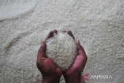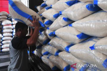 Pekerja menunjukkan beras sebelum dikemas ke dalam karung di Pasar Baru, Kudus, Jawa Tengah, Kamis (7/9/2023). Pemerintah memperpanjang penyaluran bantuan pangan beras kepada 21,353 juta Keluarga Penerima Manfaat (KPM) sebanyak 10 kilogram per KPM yang disalurkan pada September, Oktober dan November 2023 sebagai upaya pemerintah menstabilkan harga beras akibat dampak dari terjadinya El Nino. ANTARA FOTO/Yusuf Nugroho/Spt.