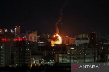 Ledakan pesawat tak berawak (drone) selama serangan drone Rusia di Kyiv, Ukraina (10/9/2023). ANTARA FOTO/REUTERS/Gleb Garanich/tom.