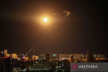 Ledakan pesawat tak berawak (drone) terlihat di langit selama serangan drone Rusia di Kyiv, Ukraina (10/9/2023). ANTARA FOTO/REUTERS/Gleb Garanich/tom.