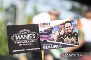 Bakal calon presiden dari Koalisi Perubahan untuk Persatuan Anies Baswedan (kanan) menyapa para pendukungnya saat menghadiri senam sehat bersama Partai Keadilan Sejahtera (PKS) di Benteng Kuto Besak, Palembang, Sumatera Selatan, Minggu (9/10/2023). Acara tersebut diikuti ribuan kader PKS dan sebagai bentuk dukungan kepada Anies Baswedan dalam Pilpres 2024. ANTARA FOTO/Nova Wahyudi/tom.
