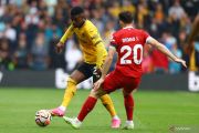 Pesepak bola Wolverhampton Wanderers Nelson Semedo (kiri) berebut bola dengan pesepak bola Liverpool Diogo Jota dalam laga lanjutan Liga Inggris, di Stadion Molineux, Wolverhampton, Inggris, Sabtu (16/9/2023). ANTARA FOTO/Reuters-Matthew Childs/hp.