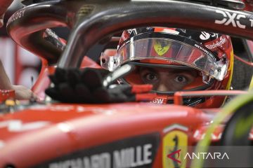 Pembalap Ferrari Carlos Sainz Jr. memacu kecepatan kendaraannya saat sesi kualifikasi balapan F1 GP Singapura 2023 di Marina Bay Street Circuit, (16/9/2023). Carlos Sainz Jr. berhasil merebut pole position dan berhak start terdepan pada balapan tersebut diikuti pembalap Mercedes George Russell dan pembalap Ferrari Chales Leclerc. ANTARA FOTO/REUTERS/Caroline Chia/Pool/aww.