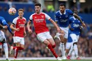 Pemain Arsenal Declan Rice berebut bola dengan pemain Everton Dwight McNeil pada laga Liga Inggris di Goodison Park, Liverpool, Inggris (17/9/2023). ANTARA FOTO/REUTERS/Phil Noble/aww.
