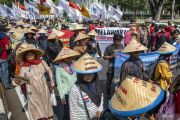 Sejumlah massa aksi yang tergabung dalam Komite Pembaruan Agraria Nasional (KNPA) melakukan aksi unjuk rasa dalam rangka Peringatan Hari Tani Nasional 2023 di Jakarta, Selasa (26/9/2023). Dalam aksinya merekan menyuarakan sejumlah tuntutan diantaranya membentuk dewan pertimbangan reforma agraria sebagai pengarah pelaksanaan reforma agraria sejati serta mendorong RUU Reforma Agraria dan mengesahkan RUU Masyarakat Adat. ANTARA FOTO/Muhammad Adimaja/foc.