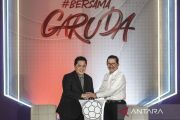 Ketua Umum PSSI Erick Thohir (kiri) dan Presiden Direktur PT Freeport Indonesia Tony Wenas (kanan) menekan tombol bersama saat seremoni perjanjian kerja sama pada PSSI Partner Summit 2023 di Jakarta, Rabu (27/9/2023). Pada acara tersebut PSSI mengundang potensial sponsor serta agensi untuk mengenalkan dan mempresentasikan produk PSSI (tim nasional dan kompetisi) serta meluncurkan akun timnas Indonesia, aplikasi KitaGaruda, dan lagu Bersama Garuda. ANTARA FOTO/Dhemas Reviyanto/Spt.