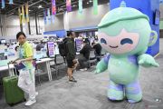 Maskot Asian Games 2022 Lianlian berjalan di area Main Press Center (MPC), Hangzhou, China, Sabtu (30/9/2023). Lianlian salah satu dari tiga maskot robot dari Asian Games Hangzhou 2022 selain Congcong dan Chenchen yang menjadi simbol dari semangat Olimpiade, perdamaian, dan persahabatan. ANTARA FOTO/M Risyal Hidayat/hp.