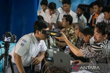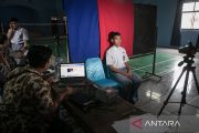 Petugas Dinas Kependudukan dan Pencatatan Sipil (Disdukcapil) Karanganyar melakukan perekaman data Kartu Tanda Penduduk elektronik (e-KTP) pelajar di SMK Satya Karya Karanganyar, Jawa Tengah, Senin (2/10/2023). Disdukcapil Karanganyar memfasilitasi layanan perekaman KTP elektronik bagi pelajar melalui program "goes to school" untuk memaksimalkan jumlah partisipasi pada Pemilu 2024 khususnya bagi pemilih pemula. ANTARA FOTO/Mohammad Ayudha/Spt.