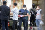 Anggota kepolisian berjaga saat penyidik Komisi Pemberantasan Korupsi (KPK) menggeledah rumah pribadi Menteri Pertanian (Mentan) Syahrul Yasin Limpo di Jalan Pelita Raya, Makassar, Sulawesi Selatan, Rabu (4/10/2023). Penggeledahan yang dilakukan lima penyidik KPK itu berlangsung selama kurang lebih lima jam dan KPK membawa satu koper barang bukti serta mobil sedan merk Audi. ANTARA FOTO/Hasrul Said/rwa.