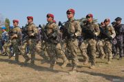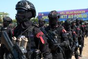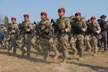 Pasukan TNI mengikuti Apel Gelar Pasukan Pengamanan Konferensi Tingkat Tinggi (KTT) Archipelagic and Island States (AIS) Forum 2023 di Lapangan Puputan Margarana, Denpasar, Bali, Sabtu (7/10/2023). Sebanyak 15.581 personel TNI-Polri diterjunkan untuk memastikan keamanan para kepala negara dan delegasi dalam pelaksanaan Konferensi Tingkat Tinggi (KTT) Archipelagic and Island States (AIS) Forum di Nusa Dua, Bali, pada 10-11 Oktober 2023.. ANTARA FOTO/Nyoman Hendra Wibowo/foc.