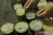 Seorang pelayan di warung kopi Solong memperlihatkan kopi robusta untuk disajikan kepada pengunjung di kawasan Ulee Kareng, Banda Aceh, Aceh, Senin (9/10/2023). Warung kopi Solong didirikan pada 1974 oleh Muhammad Saman atau akrab disapa Abu Solong dan kini dikelola generasi kedua dengan tetap menyajikan kopi robusta khas Aceh secara tradisional untuk wisatawan lokal maupun mancanegara. ANTARA FOTO/Khalis Surry/aww.