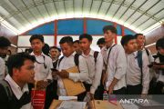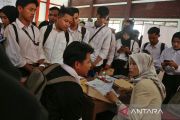 Sejumlah peserta mencari informasi lowongan kerja saat Job Fair di Cikole, Kota Sukabumi, Jawa Barat, Rabu (11/10/2023). Pameran bursa kerja yang diselenggarakan Sekolah Menengah Kejuruan (SMK) Pasim Plus dan Dinas Ketenagakerjaan Kota Sukabumi tersebut menghadirkan 21 perusahaan dengan total pencari kerja sebanyak 2.100 peserta. ANTARA FOTO/Henry Purba/wpa/Spt.