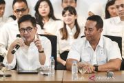 Ketua Tim Pemenangan Nasional (TPN) Ganjar Pranowo Arsjad Rasjid (kiri) didampingi Wakil Ketua Andika Perkasa memberikan keterangan pers peresmian Media Center TPN Ganjar Presiden di Jalan Cemara, Menteng, Jakarta, Minggu (15/10/2023). Media Center itu akan melayani segala kebutuhan informasi media massa terkait kerja-kerja yang dilakukan Tim Pemenangan Nasional. ANTARA FOTO/Hafidz Mubarak A/nym.