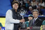 Petenis AS Ben Shelton merayakan kemenagannya setelah mengalahkan petenis Rusia Aslan Karatsev pada final tunggal putra Japan Open 2023 di Ariake Coliseum, Tokyo, Jepang, Minggu (22/10/2023). Ben Shelton berhasil mengalahkan Aslan Karatsev dengan 7-5, 6-1. ANTARA FOTO/REUTERS/Androniki Christodoulou/Spt.