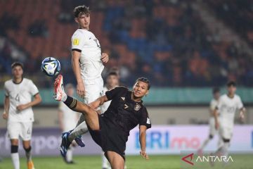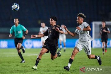 Ekspresi pesepak bola Timnas Jerman Paris Brunner saat bertanding melawan Selandia Baru pada pertandingan fase Grup F Piala Dunia U-17 2023 di Stadion Si Jalak Harupat, Kabupaten Bandung, Jawa Barat, Rabu (15/11/2023). Timnas Jerman menang 3-1 atas Selandia Baru dan memastikan lolos ke babak 16 besar. ANTARA FOTO/Wahyu Putro A/YU