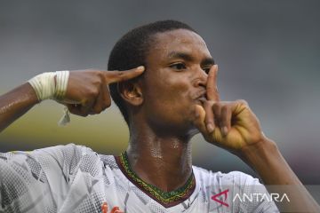 Pesepak bola Timnas Mali Mahamoud Barry merayakan golnya ke gawang Timnas Kanada Theo Rigopoulos dalam pertandingan babak penyisihan grup B Piala Dunia U-17 2023 di Stadion Gelora Bung Tomo, Surabaya, Jawa Timur, Kamis(16/11/2023). ANTARA FOTO/ Ari Bowo Sucipto/rwa.