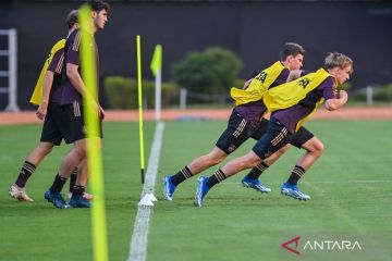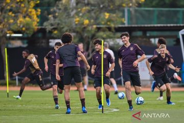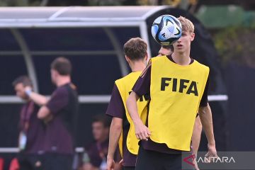 Pesepak bola Timnas Jerman U-17 berlatih di lapangan latihan Saraga ITB, Bandung, Jawa Barat, Senin (20/11/2023). Timnas Jerman U-17 akan bertanding melawan Timnas Amerika Serikat babak 16 besar Piala Dunia U-17 di Stadion Si Jalak Harupat pada Selasa (21/11/2023). ANTARA FOTO/M Agung Rajasa/aww.