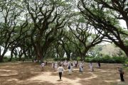 Pengunjung menikmati suasana hutan Djawatan di Banyuwangi, Jawa Timur, Kamis (23/11/2023). Hutan pohon trembesi berusia ratusan tahun seluas 9 hektar yang berada di lahan milik Perhutani tersebut dahulu menjadi Tempat Penimbunan Kayu (TPK) namun sejak tahun 2018 diresmikan menjadi tempat wisata unggulan di Banyuwangi hingga sekarang. ANTARA FOTO/Budi Candra Setya/aww.