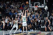 Pebasket Boston Celtics Jayson Tatum (0) menggiring bola melawan pebasket Orlando Magic Jonathan Isaac (1) dalam pertandingan basket NBA di Amway Center, Orlando, Florida, Amerika Serikat, Sabtu (25/11/2023). Orlando Magic mengalahkan Boston Celtics dengan skor 113-96. ANTARA FOTO/USA TODAY Sports via Reuters/Jeremy Reper/nym.