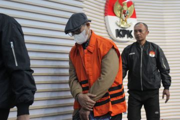 Tersangka Hakim Agung (nonaktif) Gazalba Saleh (tengah) dikawal menuju ruang konferensi pers terkait penetapan dan penahanan tersangka di Gedung Merah Putih KPK, Jakarta, Kamis (30/11/2023). Gazalba Saleh yang sebelumnya divonis bebas karena tidak terbukti bersalah dalam perkara suap pengurusan perkara kasasi di Mahkamah Agung, kembali ditahan dalam dugaan menerima gratifikasi dan Tindak Pidana Pencucian Uang (TPPU) atas sejumlah perkara yang ditanganinya di MA pada periode 2018 - 2022 dengan nilai mencapai Rp15 miliar, yang telah berubah menjadi berbagai aset Rumah, Tanah dan Mata Uang Asing. ANTARA FOTO/Reno Esnir/aww.
