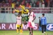 Sejumlah pesepak bola Timnas Mali berselebrasi usai mengalahkan Timnas Argentina pada pertandingan perebutan tempat ketiga Piala Dunia U-17 2023 di Stadion Manahan, Solo, Jawa Tengah, Jumat (1/12/2023). Mali merebut posisi ketiga Piala Dunia U-17 usai mengalahkan Argentina dengan skor 3-0. ANTARA FOTO/Akbar Nugroho Gumay/wpa.