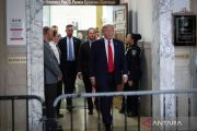 Mantan Presiden AS Donald Trump (kedua kanan) berjalan keluar saat jeda persidangan dugaan penipuan sipil Trump Organization di Mahkamah Agung New York, Amerika Serikat, Jumat (8/12/2023). ANTARA FOTO/Reuters/Mike Segar/nym.
