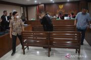 Terdakwa kasus dugaan korupsi pengadaan lahan di Pulogebang yaitu mantan Direktur Utama Perumda Pembangunan Sarana Jaya Yoory Corneles (kiri), Direktur PT Aldira Berkah Abadi Makmur Rudi Hartono (tengah) dan mantan Direktur PT Adonara Propertindo Tommy Ardian (kanan) berjalan keluar usai mengikuti sidang perdana di Pengadilan Tipikor, Jakarta, Rabu (13/12/2023). Sidang tersebut beragenda mendengarkan dakwaan oleh jaksa penuntut umum. ANTARA FOTO/Akbar Nugroho Gumay/YU