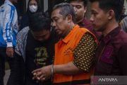 Dua terdakwa kasus korupsi proyek pengadaan CCTV dan ISP Bandung Smart City Yana Mulyana (kiri) dan Dadang Darmawan (kanan) menjalani sidang vonis di Pengadilan Tipikor Bandung, Jawa Barat, Rabu (13/12/2023). Majelis Hakim memvonis mantan Wali Kota Bandung tersebut dengan hukuman 4 tahun penjara, denda Rp200 juta subsider 3 bulan kurungan ditambah kewajiban membayar uang pengganti senilai Rp435 juta, 14.520 dolar Singapura, 645 ribu yen, 3 ribu dolar AS serta 15.630 bath. ANTARA FOTO/Novrian Arbi/YU