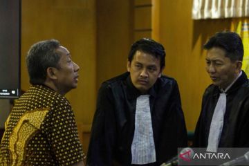Terdakwa kasus korupsi proyek pengadaan CCTV dan ISP Bandung Smart City Yana Mulyana (kiri) berkonsultasi dengan penasihat hukum usai menjalani sidang vonis di Pengadilan Tipikor Bandung, Jawa Barat, Rabu (13/12/2023). Majelis Hakim memvonis mantan Wali Kota Bandung tersebut dengan hukuman 4 tahun penjara, denda Rp200 juta subsider 3 bulan kurungan ditambah kewajiban membayar uang pengganti senilai Rp435 juta, 14.520 dolar Singapura, 645 ribu yen, 3 ribu dolar AS serta 15.630 bath. ANTARA FOTO/Novrian Arbi/YU