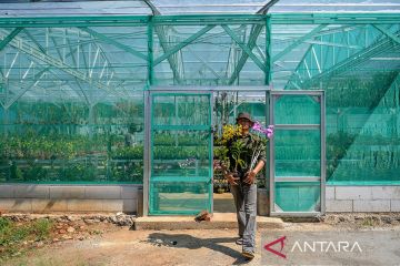 Pekerja merawat tanaman anggrek di Anggrek Rumah Oren, Cimanggung, Kabupaten Sumedang, Jawa Barat, Rabu (20/12/2023). Anggrek Rumah Oren tersebut melakukan pembibitan tujuh jenis anggrek dari berbagai daerah di Indonesia yang kemudian dijual dari harga Rp5.000 hingga Rp275.000 per pot serta ke berbagai kota di tanah air. ANTARA FOTO/Raisan Al Farisi/rwa.
