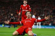 Pemain Liverpool Curtis Jones mencetak gol kelima pada laga perempat final Piala Carabao melawan West Ham United di Anfield, Liverpool, Inggris (20/12/2023). Liverpool berhasil menggasak West Ham United dengan skor 5-1 sehingga mengantarkan The Reds melaju ke babak semifinal. ANTARA FOTO/REUTERS/Molly Darlington/aww.