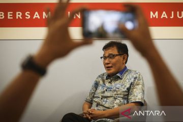 Wakil Ketua Dewan Pakar Tim Kampanye Nasional (TKN) Prabowo-Gibran, Budiman Sudjatmiko menjawab pertanyaan saat wawancara khusus dengan Lembaga Kantor Berita Nasional Antara di Jakarta, Kamis (28/12/2023). Dalam wawancara khusus tersebut, Budiman memaparkan berbagai hal terkait persiapan debat ke-3 Pilpres 2024 pada Minggu (7/1/2024) dan strategi kampanye TKN Prabowo-Gibran. ANTARA FOTO/Rivan Awal Lingga/Spt.