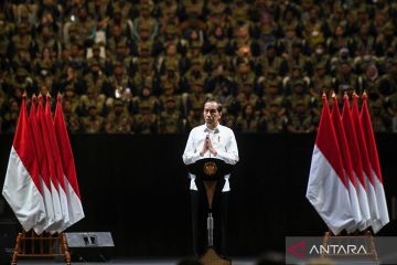 Presiden Joko Widodo memberikan arahan pada rapat konsolidasi nasional kesiapan Pemilu 2024 di Istora Senayan, Jakarta, Sabtu (30/12/2023). Jelang 45 hari penyelenggaran Pemilu 2024 KPU menggelar konsolidasi nasional yang diikuti anggota dan ketua KPU daerah se-Indonesia dalam rangka kesiapan penyelenggaraan Pemilu. ANTARA FOTO/Hafidz Mubarak A/aww.