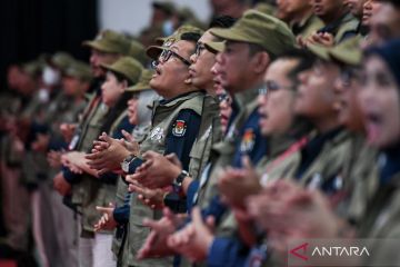 Anggota dan ketua KPU daerah mengikuti rapat konsolidasi nasional kesiapan Pemilu 2024 di Istora Senayan, Jakarta, Sabtu (30/12/2023). Jelang 45 hari penyelenggaran Pemilu 2024 KPU menggelar konsolidasi nasional yang diikuti anggota dan ketua KPU daerah se-Indonesia dalam rangka kesiapan penyelenggaraan Pemilu. ANTARA FOTO/Hafidz Mubarak A/aww.