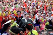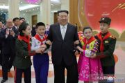 Pemimpin Korea Utara Kim Jong Un menghadiri acara bersama pelajar untuk merayakan tahun baru 2024 di Pyongyang, Korea Utara, dalam gambar yang dirilis oleh Kantor Berita Pusat Korea (KCNA), Selasa (2/1/2024). ANTARA FOTO/KCNA via REUTERS/aww.