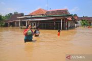 Warga melintasi jalan yang terdampak banjir di Desa Ngambakrejo, Tanggungharjo, Grobogan, Jawa Tengah, Selasa (2/1/2024). Menurut data sementara BPBD setempat, banjir akibat hujan deras dan meluapnya Sungai Tuntang itu menyebabkan ratusan rumah dan fasilitas umum serta sejumlah jalan utama di tujuh desa di lima kecamatan terdampak banjir. ANTARA FOTO/Yusuf Nugroho/aww.